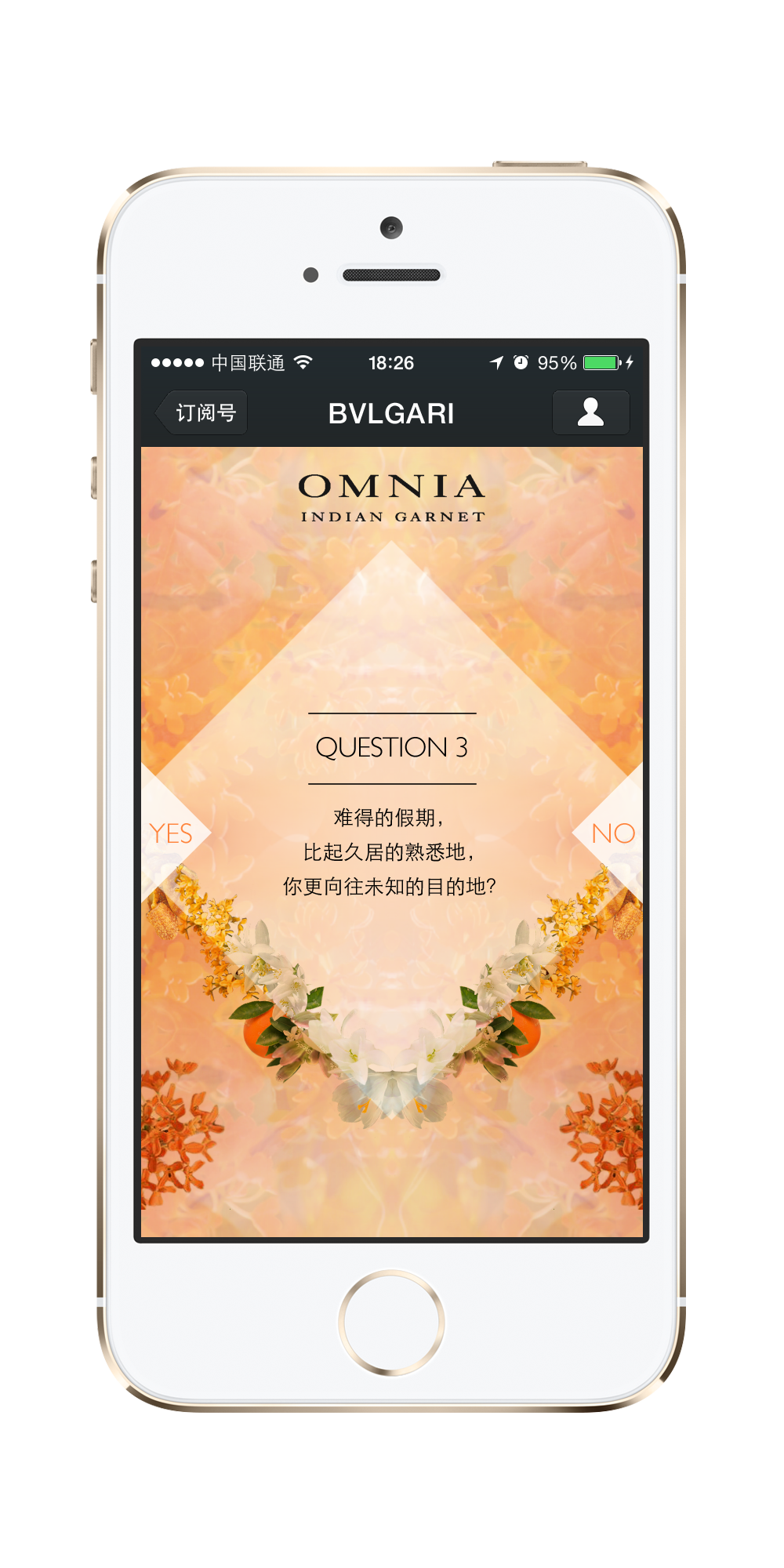Start from the user own personality, we will lead them to find their own unique scent represented in the six core scents of OMNIA OIG via a personality test, then further invite them to witness the beauty through the element of sunset, jewelry, and flowers.