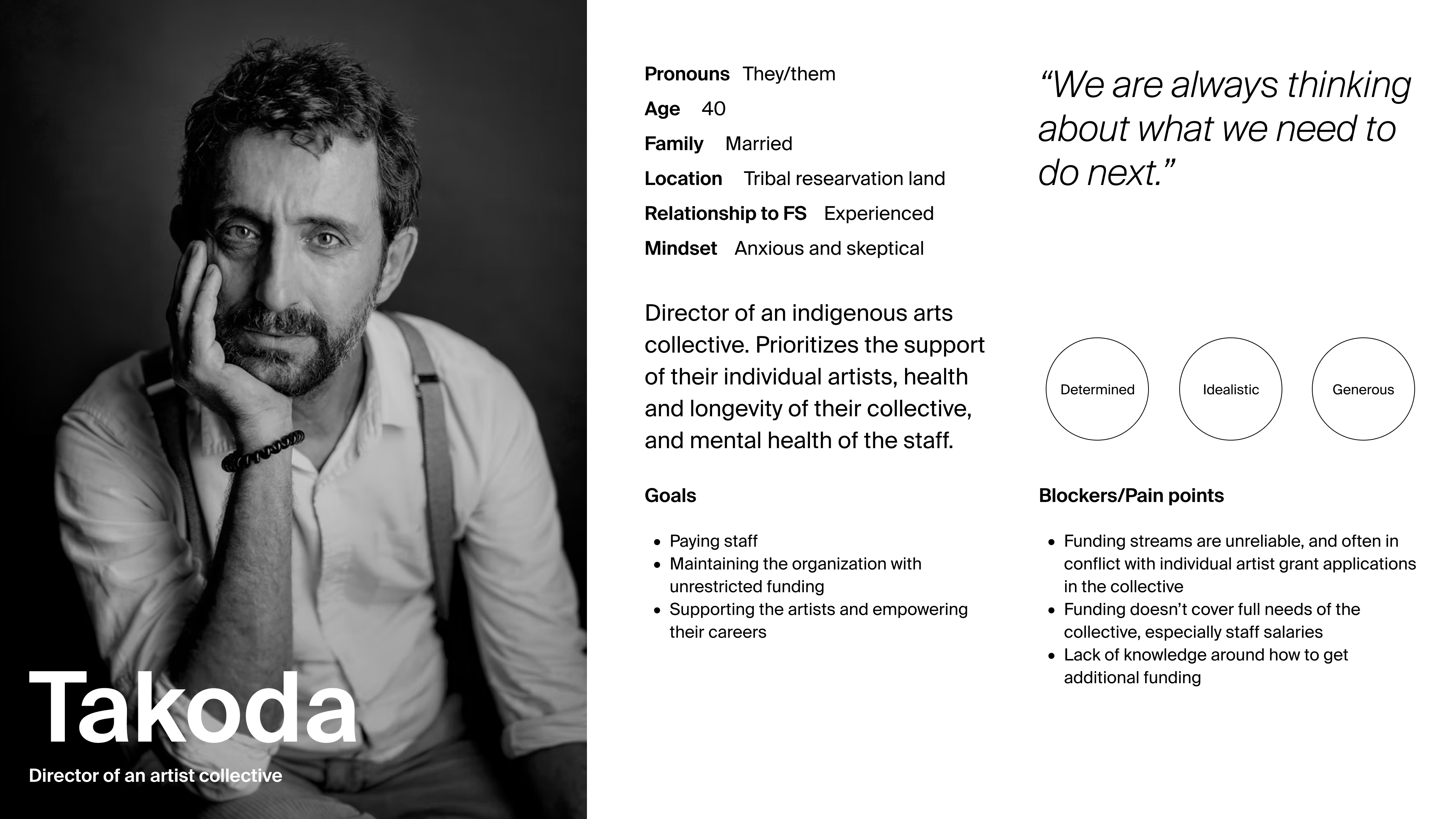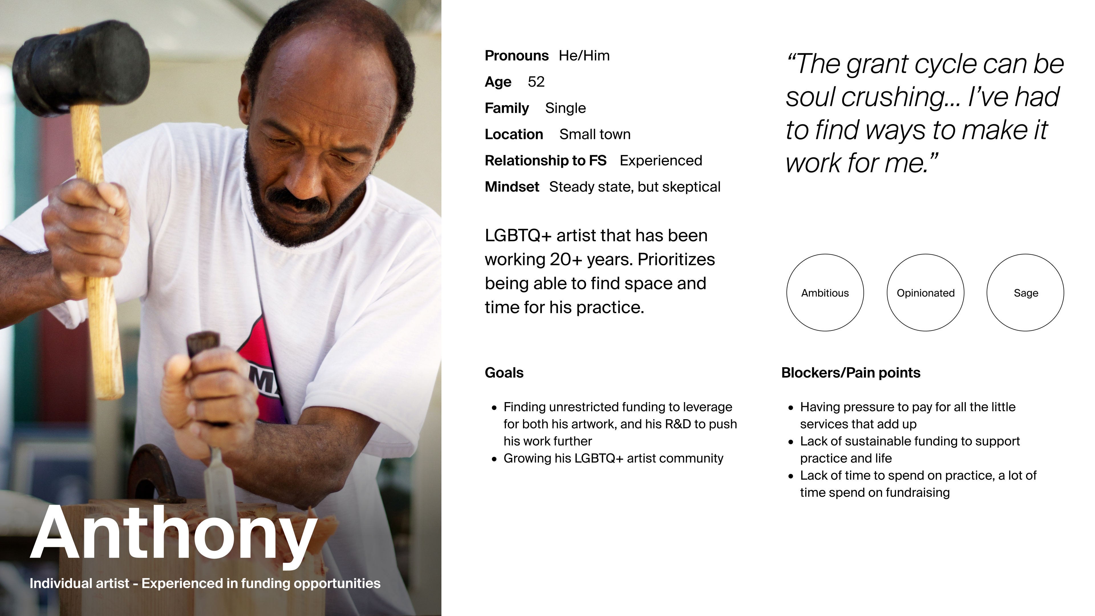 We are building personas based on three dimensions rooted in our conversations with artists: